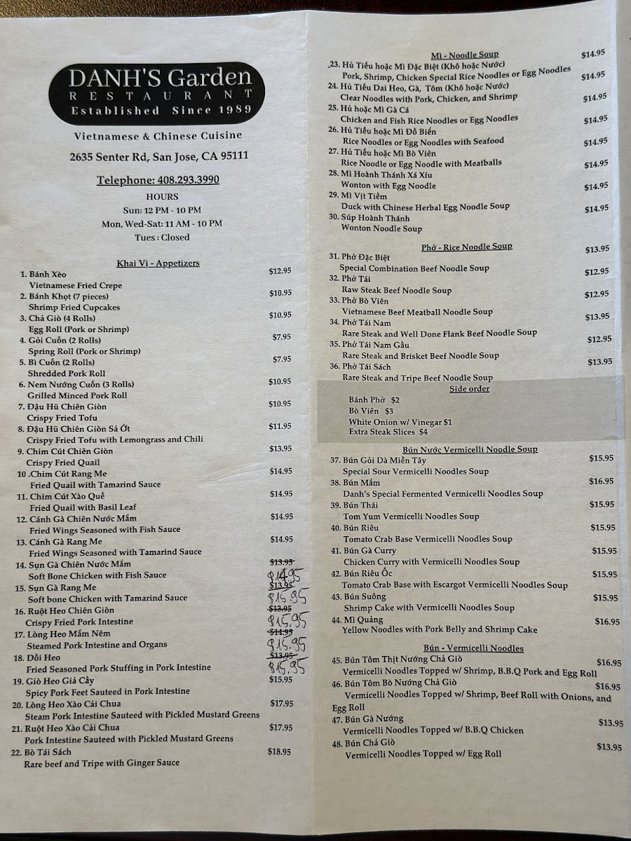 Step right up and dive into the flavors waiting for you at Danh's Garden Menu. From the first glance, it’s clear that this isn’t just any place to grab a bite - every dish here seems to have a story. Start with something light, like their fresh spring rolls, bursting with crisp vegetables and herbs that practically jump off the plate. If you’re craving a little heat, the pho and noodle bowls deliver warming, aromatic broths that hit just the right balance between savory and comforting.